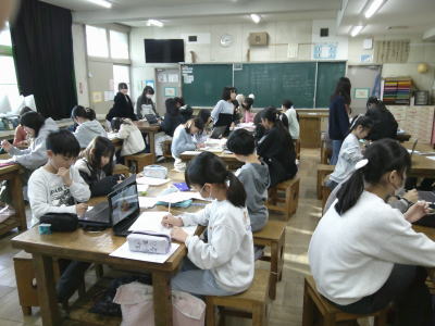 5時間目の5年生社会の授業の様子です。日本の工業生産について学習していました。
