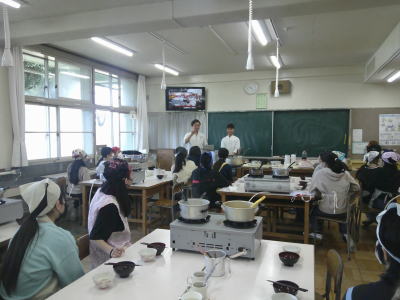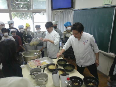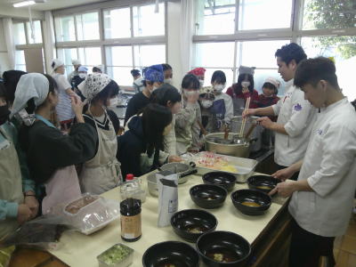 家庭科室からいい出汁の香りがしてきました。今日は6年生のキャリア教育の授業で、東中神駅北口の「麵や独歩」の御主人にゲストティーチャーとして武蔵野小学校に来ていただきました。