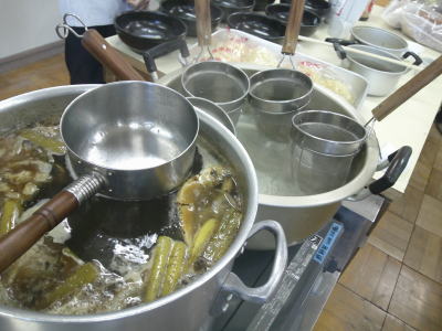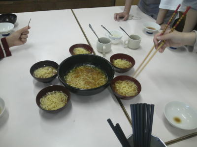 真ん中の器はお店で使われているものです。一人前でも量がたっぷりあります。これを班で分け合います。