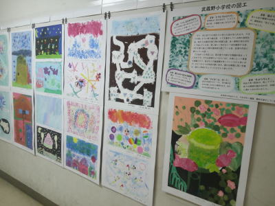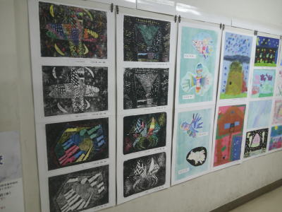 また、図工室前の廊下には、先月の昭島市小学校図工展でアキシマエンシスに展示された作品が掲示されています。