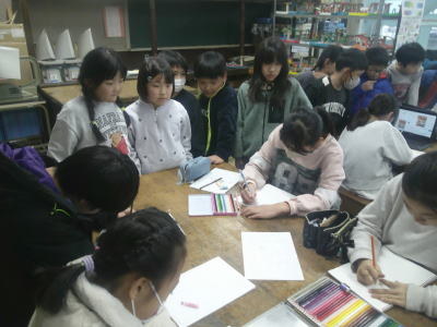 お互いの作品を見て、参考にしながら最期の仕上げをしています。