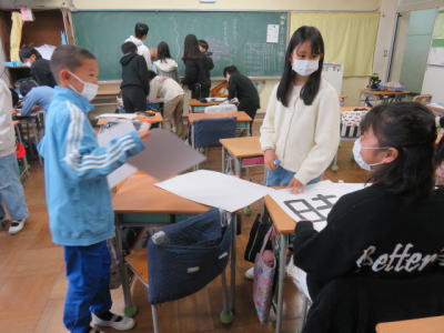 5年生は、6年生に関わる「バラバラ(文字あて)クイズ」。様々なバージョンで工夫していました。