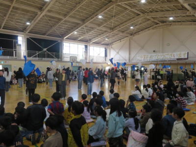 今朝の児童集会の様子です。ほどほどに温かく、昨日のような風もなく、集会日和でした。