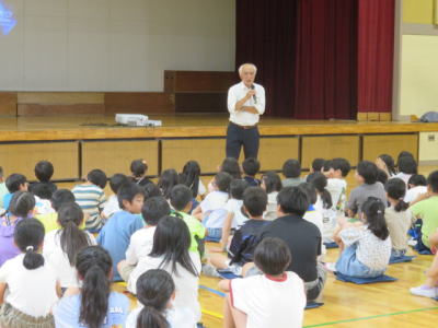 生活指導の先生からも話がありました。命の大切さ、SOSの出し方授業(7月16日参照)で学んだように、困ったときは相談しましょうと全校児童に呼びかけました。