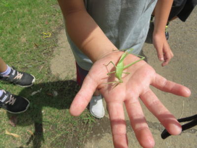 バッタなどたくさんの虫を見付けていました。