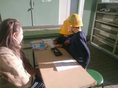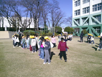 12月の避難訓練は火事を想定した訓練です。今日は職員室からの出火、放送機器が使えないという想定で実施しました。