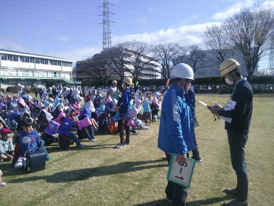 笛の相図や拡声器、先生たちの声で子供たちに状況を伝えながら校庭まで避難しました。話し声も少なくスムーズな訓練でした。