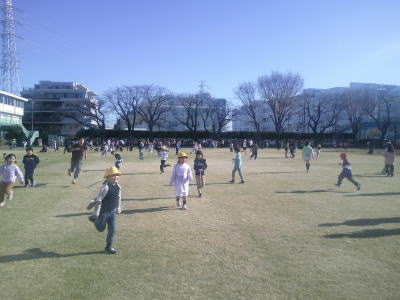 昼休みは風もなく暖かで、校庭で遊ぶにはちょうどよい気候です。