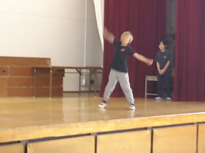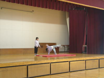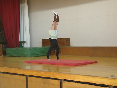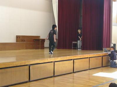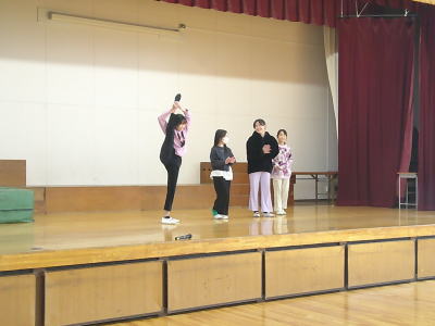 全校からたくさんの応募があり、舞台の上では自慢の特技の数々が披露されました。上の写真はバレエをがんばっている人たちです。得意のポーズを披露しています。