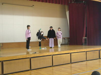 6年生の寸劇には担任の先生も登場していました。残念ながらチャイムが鳴り、残り2組が明日の発表となりました。楽器の準備がしてあったので、何か曲を演奏するようです。楽しみにしています。