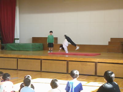 動きが鋭く、写真に収めきれない特技がまだまだたくさんありました。今日だけで十数名が発表してくれましたが、実は応募してくれた人はまだまだいるそうです。そこで、この「特技披露大会」は3回に分けて実施することになっています。次回は19日(金)の昼休みです。司会の子供たちにリストを見せてもらったところ、次回以降も歌や演奏、空手、お笑い?など、さらにバラエティーに富んだ発表が見られそうです。次回も楽しみです。