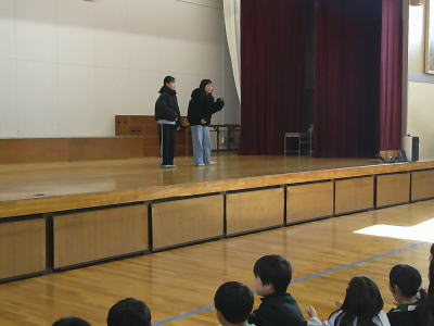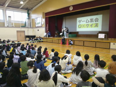 5時間目は、体育館での交流会です。司会進行も2年生たちが行いました。