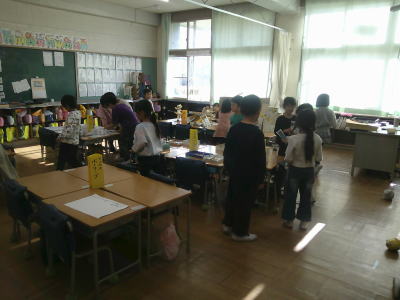他のクラスに行けるのはテンションが上がります。同じテーマで作ったおもちゃでも、クラスによって工夫の仕方が全然ちがうのも新鮮なようです。