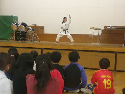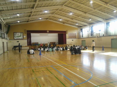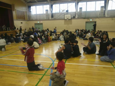 先週に続き、昼休みは「特技披露大会」が開催されました。口コミで沢大が広がり、観客も増えています。写真はスタート時ですが、この後さらにたくさんの児童が体育館に集まりました。