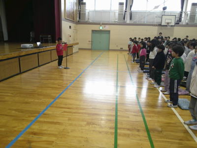 児童代表の言葉は1年生です。2学期の頑張りと3学期の目標を立派に発表してくれました。