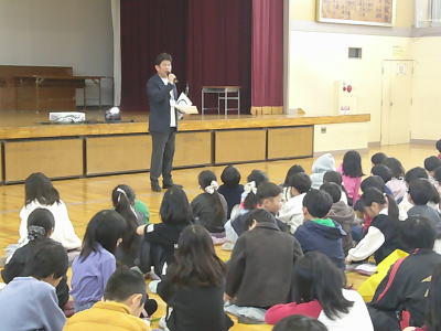 表彰の紹介もありました。副校長先生が手にしているのは、選挙管理員会から「明るい選挙ポスター展」にたくさん応募してくれたことへの感謝状です。