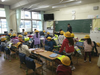 担当の先生からは、ハンカチなどで煙を吸わないようにすることと、最後までしっかり話を聞くという話がありました。口頭で各クラスに火災を伝えに行くと、子供たちは反射的に机の下にもぐり、その音で指示か聞こえなくなるということもあったそうです。身も守る習慣が身に付いているのは素晴らしいことですが、状況ごとに正しい行動ができるように引、き続き指導してまいります。