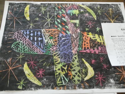 それぞれのグループの机には楽しそうな作品が並んでいます。