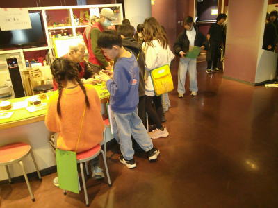 各グループともお店当番とお客さんに分かれ、3つのクラス同時にお店やさんごっこです。