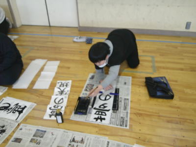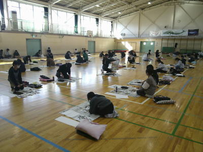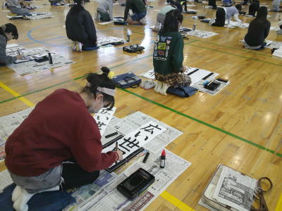 体育館では、高学年の席書会が行こなわれました。1・2時間目は5年生が、3・4時間目は6年生が、それぞれの練習の成果を発揮していました。