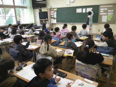 1年生は3クラスとも算数で大きな数の勉強をしていました。