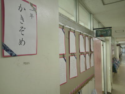 各教室の廊下には、席書会で書かれた子供たちの書初め作品が掲示されています。明日の学校公開ではぜひ、子供たちの力作をご覧ください。