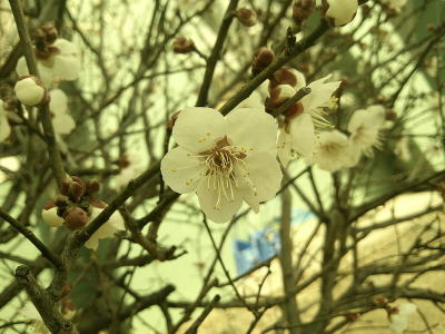 それでも春はもうすぐそこまで来ています。校庭には白梅の花が咲いています。