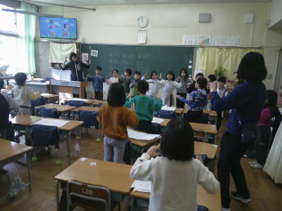 1年生が手話を使いながら歌を歌っていました。