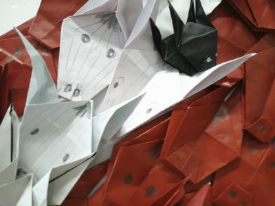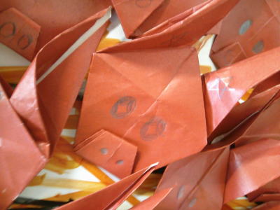 図書室で、子供たちが折り紙の「馬」をたくさん折ってくれました。