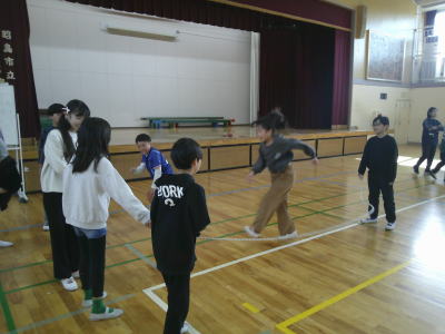 異学年で協力しながら遊んでいました。進んでリードする高学年の人たちもたくさんいます。たてわり班活動の経験も生きているようです。無理せず、自然体で企画が実施されています。