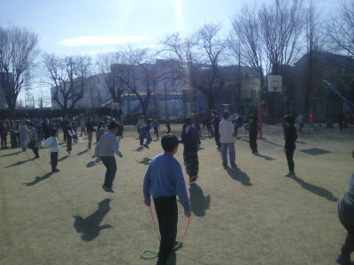 先週から始まった「短なわ週間」も既に後半です。子供たちは中休みや体育の時間に熱心に練習に取り組んでいます。今日の中休みも、暖かい日差しの日差しの下、たくさんの子供たちが汗をかいています。