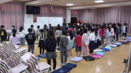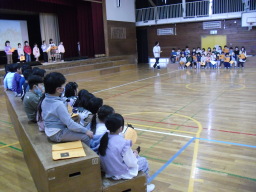 体育館で学芸会の練習が始まりました。体育館の後ろで見ている人たちにも伝わりやすくするために、どうすればよいか考えながら練習に臨んでいます。大きな声ではきはきとせりふを話す子、身振りを考えて体を動かしながら話す子など、それぞれの工夫が見られます。場面ごとの入れ替わりや歌の練習も引き続き頑張っていきます。来週は衣装を着用したり小道具を使ったりして、より一層本番の雰囲気を味わいながら練習をします。衣装のご用意をお願いいたします。 |