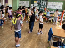 9月4日(木)に四つ葉教室の理解教育を行いました。「四つ葉教室では、どんなことを勉強しているのかな?」と気になっていた子供たち。お話を聞いた後、実際に四つ葉教室で行っている勉強の体験もしました。体験をした後は、「切り替え」や「話を聞く」ことなどを意識して行動できる様子が見られました。このように、互いを理解する活動を継続することは、友達同士で高め合ったり認め合ったりしていくことにつながっていきます。  |