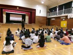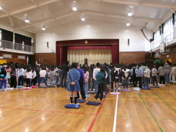 先日はご多用の中、運動会へお越しいただきありがとうございました。写真は、運動会を目前に控えた学年集会の様子です。「4年生で一致団結して3年生をリードし、全力を出すぞ!」とみんなでエイサー玉入れをしたり、リレーをしたりして気持ちを高めました。その成果を発揮できたのか、運動会当日は見事な団結力を見せてくれました。 |