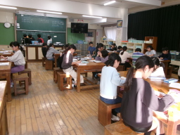 12月3日(水)の4・5時間目にミニ盆踊り大会を行いました。来年の熊野神社で行われる盆踊り大会に向けて、どうしたら来た人が楽しんでもらえるのか考えながらお店の準備をしてきました。たくさんの方にお祭りを楽しんでいただけて、「今までがんばってきてよかった」と笑顔でつぶやいている児童もいました。(12月5日更新) |