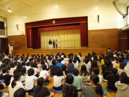 保健委員会集会が行われました。集会では、保健委員会が日頃どのような活動をしているのかを、クイズ形式で分かりやすく発表しました。保健委員会以外の児童にとっても、友達の普段の委員会での頑張りを知る良い機会となりました。また、朝会に集まる際には、時間を守って静かに待つ姿が見られ、高学年としての意識の高まりを感じます。最高学年になるにあたり、下級生のお手本となる行動ができていて、とても立派です。(1月28日更新) |