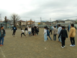 26日のの長縄記録会に向けて、各クラスで練習に励んでいます。目標達成のために何が必要かを話し合い、友達同士で声をかけ合いながら取り組んでいます。その成果もあり、どのクラスも当初の記録を上回ることができました。本番に向けて、さらに団結しより良い記録を目指して頑張っていきます。(2月19日更新) |