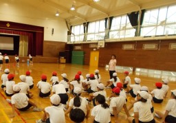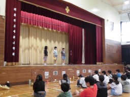 22日に劇団ポプラさんの 「ピーターパンとウエンディ」を鑑賞 しました。プロの演技に触れ、子供たちは「体を大きく動かそう」「声をはきはき出そう」と意欲を高めました。学芸会に向けて、意識を高めることができました。  |