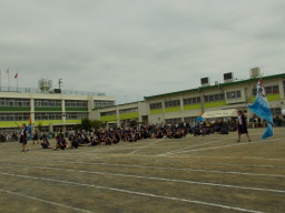 ご多用の中、運動会にお越しいただきありがとうございました。5年生は頭脳派綱引き、100m走、ソーラン節に出場しました。特にソーラン節では、掛け声や表情まで工夫し、力強く踊る姿が印象的でした。秋空の下、クラスで作った大漁旗も鮮やかに映えていました。やりきった子供たちに、ご家庭でも温かい言葉を掛けていただきたいです。  |