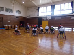 | 23日(火)に障がい者理解教育の一環として、パラリンピック日本代表としてもご活躍された講師の方をお招きして、車いすバスケットボール体験会を行いました。講義では車いすの方が日常生活で困っている場面を知り、サポートするときのポイントを学びました。その後、実際に競技用車いすに乗って操作をしてみると「真っ直ぐ進むのが難しい!」「回れない!」と言いながらも慣れてくると上手に操作していました。最後は、5対5のミニ試合をしました。座りながらのシュートは難しかったですが、仲間とパスを繋いで楽しむ子供達の姿がありました。車いすの方と一緒にスポーツを楽しむことを通して、「車いすの方との壁って何だろう。」ということを考える良い経験になったと思います。(12月25日更新) |