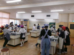 家庭科「まかせてね、今日の食事」の学習で、調理実習を行いました。今回は1食分の献立として、フレンチトーストとポテトサラダを作りました。同時に2品を調理するためには、班のみんなとの協力が必要です。事前の計画で確認した野菜の切り方や調理のポイントなどを参考に、みんなで声を掛け合いながら上手に調理していました。冬休みのお手伝いに生かしていけるとよいですね!(12月12日更新) |