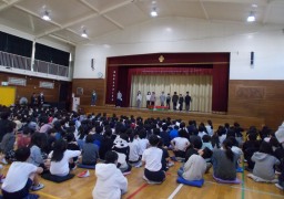 5日(木)の朝にふれあいとちの木まつりの宣伝集会が行われました。劇を取り入れたり、実際にゲームで使う道具を使ったりと、様々な工夫をして自分たちのお店を下級生に宣伝することができました。お店を出すのは4回目になるふれあいとちの木まつりも今年で最後です。これまでの経験を生かして、お店の回り方やルール設定などを工夫しながら一生懸命準備を進めています。どのようなお店が完成するのか楽しみです。(2月5日更新) |
