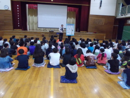 昭島警察署の方に来校いただき、交通安全教室を行いました。4月から改正された自転車についての新しい規則を中心にご指導いただきました。事故に遭わないための自分自身の行動を学ぶとともに、自分自身の行動が事故を起こしてしまう可能性もあること学びました。 |