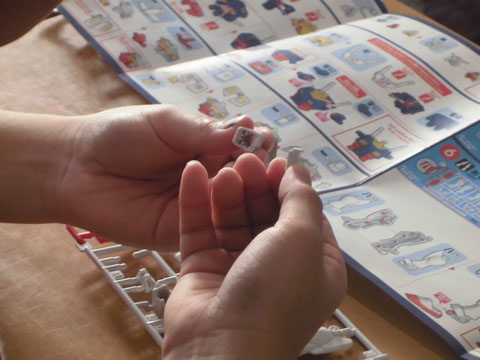 先生のお話の後、動画でガンダムのプラモデルの作り方の説明を受け、実際に自分で作っていきます。