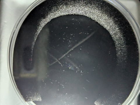 今回の出前授業では目に見えない放射線をアルコールの霧箱で見る実験をしました。