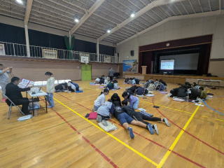 雨のため体育館での授業となりましたが、子供たちは興味深そうに取り組んでいました。