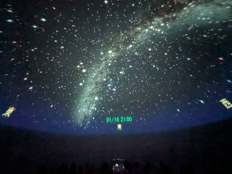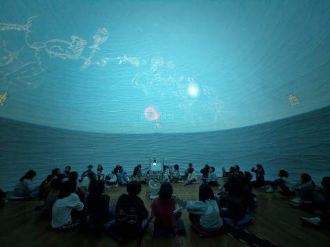 大きなテントの中で映し出された星空はとてもすばらしく、子供たちは見入っていました。