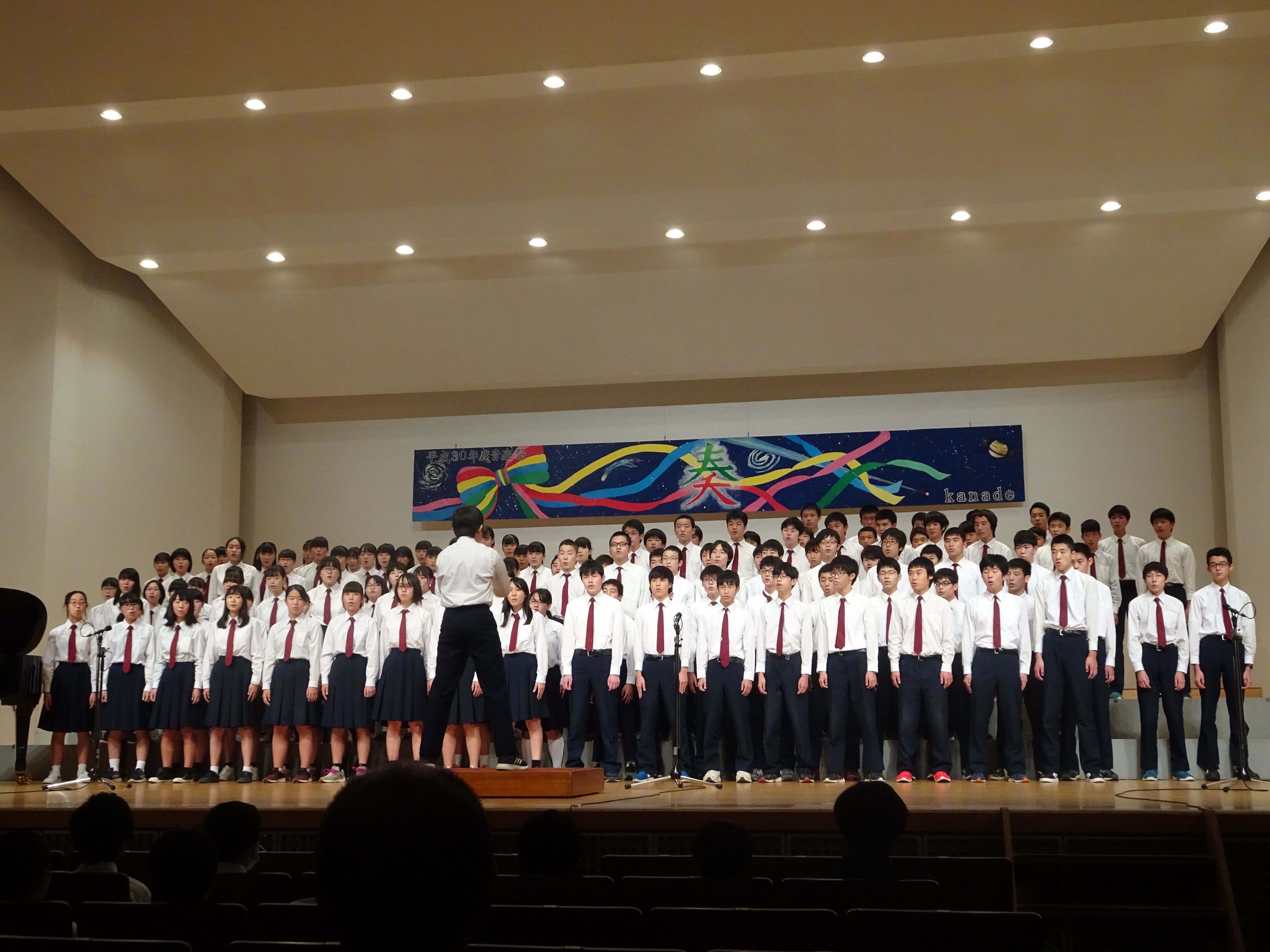 10月31日、KOTORIホールにて平成30年度音楽祭を開催いたしました。今年の生徒が考えたテーマは「奏」、オール昭和が、合奏に合唱に心一つに作品を奏でました。今年も3年生の合唱は圧巻でした。吹奏楽部の演奏あり1組コミッティの合唱ありと、昭和中生が輝く一日となりました。