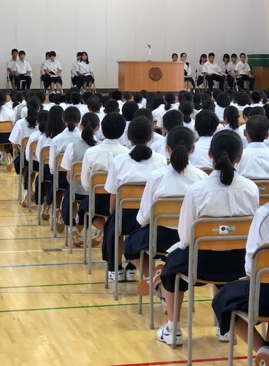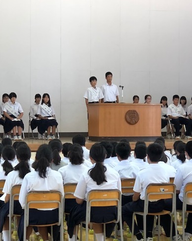 8月29日、第2学期が始まりました。この日は大規模地震に備え、地域別下校訓練を実施しました。今学期は全校行事となる音楽祭、3年生は修学旅行、2年生は職場体験、1年生は校外学習と、校外での体験学習を計画しています。実り多い2学期となるよう頑張りましょう!