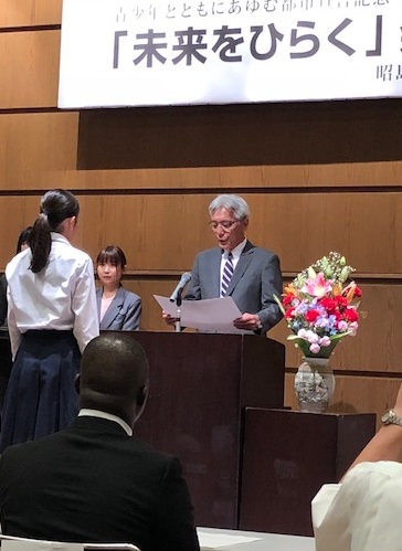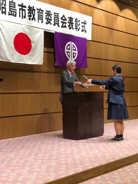 22日(土)、昭島市未来を拓く発表会が開催されました。1部「子どもの主張意見文コンクール」、第2部「英語スピーチコンテスト」、第3部は「海外交流事業報告会」でした。本校からは総勢10名の生徒が参加しました。意見文コンクールでは本校3年生が最優秀賞、英語スピーチでは1年生が優秀賞を受賞しました。皆、とても立派な発表でした。